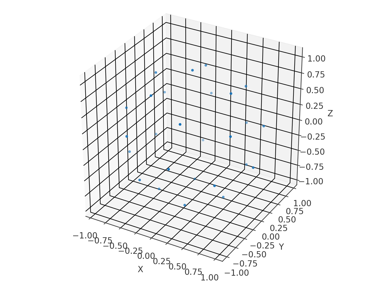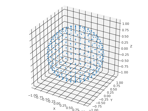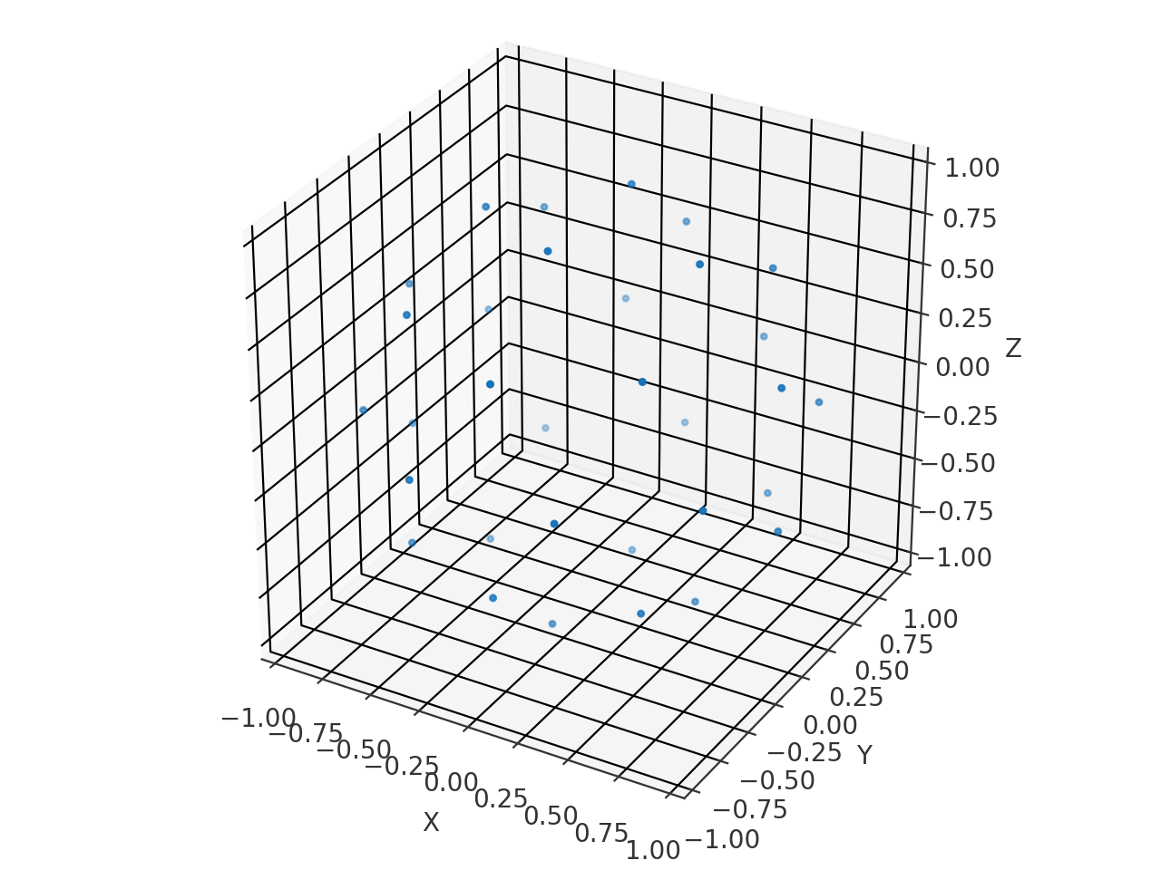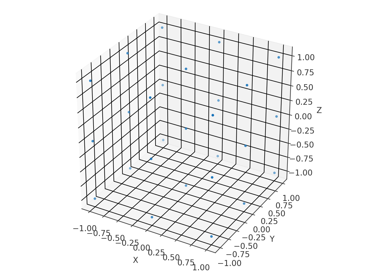 Create a cubic sampling with equidistant spacings in x, y, and z.
