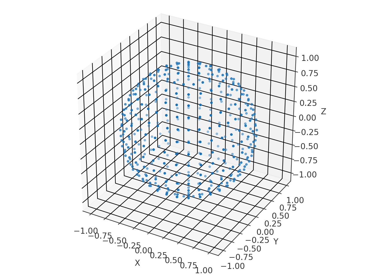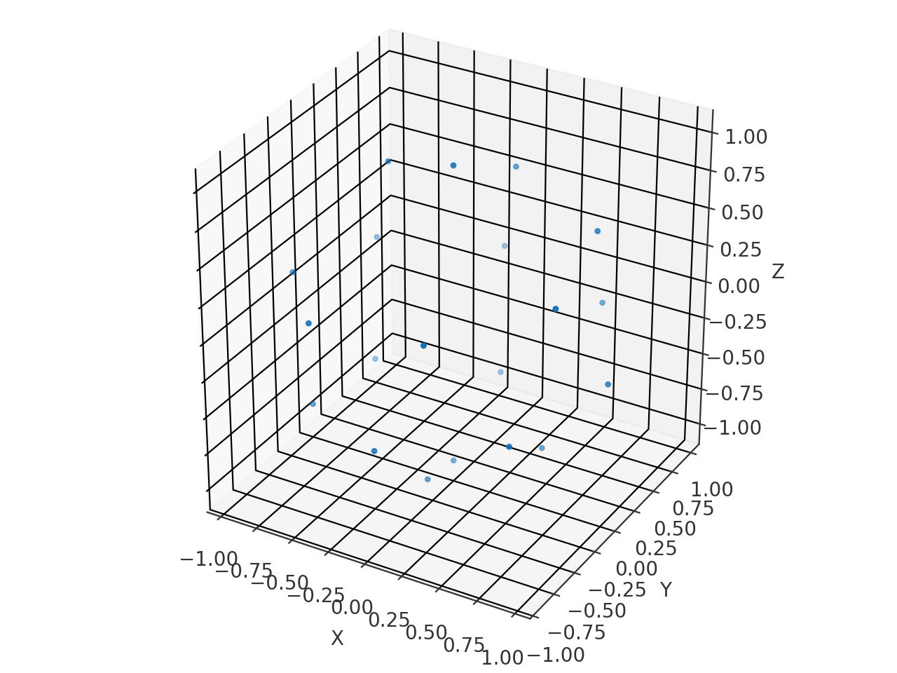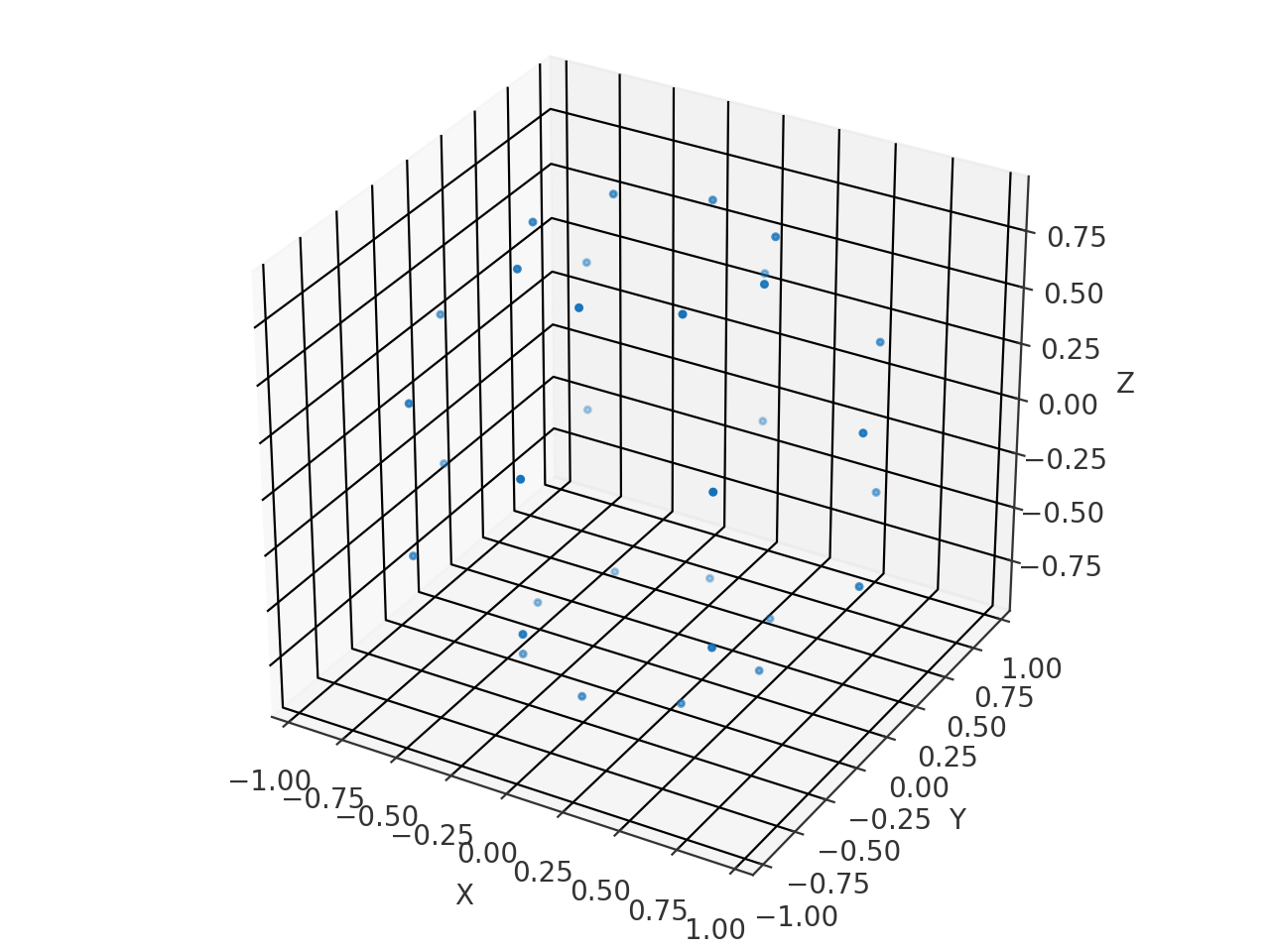 Create a cubic sampling with equidistant spacings in x, y, and z.