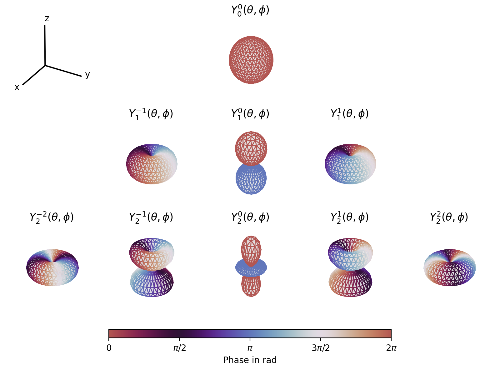 where \(N_n^m\) is the magnitude normalization, \(S^m\) is the phase convention, \(P_n^{m}(\cos\theta)\) are the associated Legendre functions, and \(A^m(\phi)\) is the azimuthal function.